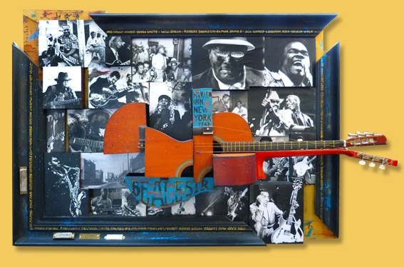 Blues auf verschiedenen Ebenen. Collagierte Gitarre