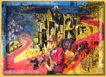 Newspaper, halfrelief collage