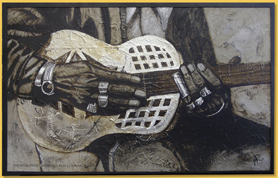 Acrylic and metal vanish on plywood