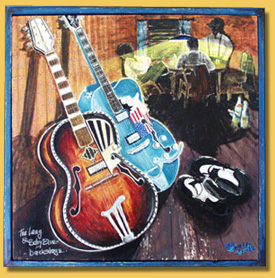 An acrylic painting on a canvas screen.